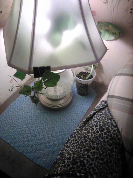 This is it as of yesterday. I had been watering randomly into that little plastic cup with regular-strength (1TBSP/GAL H2O) Expert Gardener 24-8-16 since this plant was able to cry and just yesterday switched to Miracle-Gro 10-52-10 to severely initiate blooming and a PUMPKIN to begin forming, lol. Lighting is completely random, from a 14-watt LED Walmart Great Value Bulb; I have aspirations to get a 4-pack of 200-watt-equivalent bulbs for ALL lighting, even for ME. I doubt VERY much that it'd be doing even this well without Mycorrhizae as a key soil component. It is forming plenty of males all over it. Time to party! eg