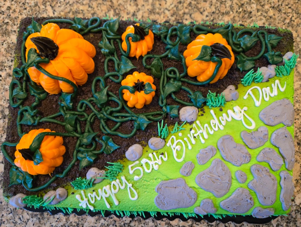 My family found a very talented bakery employee came through with an Epic giant pumpkin grower cake for this guy's 50th birthday. My seasonal summer side hustle is getting busier every year, so I'm still on the fence as to if I'll have enough time to commit to growing a pumpkin this year. Hopefully my next 50 years will include some years where I have extra time in the summer. Good luck to everybody this year!