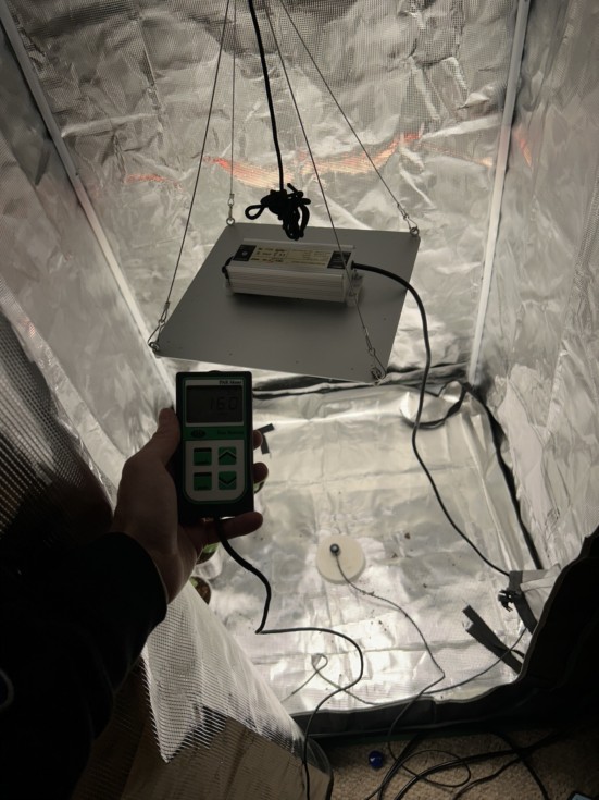 I used Matt's PAR meter to figure out my light intensity in my grow tent. Here are the number's I got: