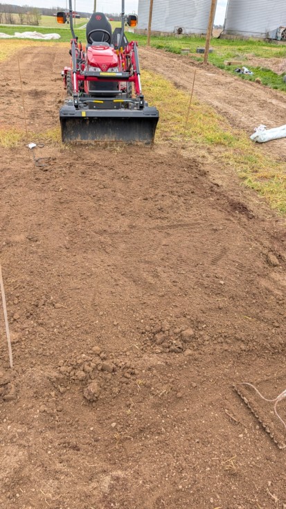 I've been keeping an area covered with plastic when it rains and that has allowed me to get the soil in great shape where the hoop houses go. I added one bale of peat moss where each 6x10 hoop house goes and tilled it in. My soil is in way better shape than at this time last year in terms of moisture level and compaction. You see a few clumps here where I dug a little deep for the heating cables and brought up some wetter soil.