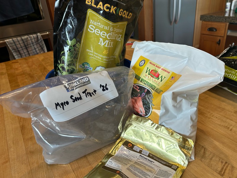 Black Gold Seedling mix, WOW Mycorrhizae, Mycos Seed Treat & Bio-Coat Gold seed treatment make up my seedling mix this year.