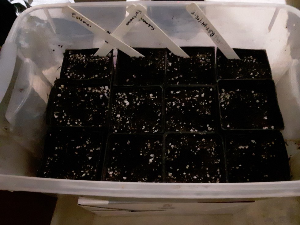 Hybrid grafting stock, four types. I was going to start the tomatoes today but really need to start this grafting stock first. The seeds are small and they are very slow at first. So I need to give them a headstart so they'll be the same size as the giant tomato scion stock later.