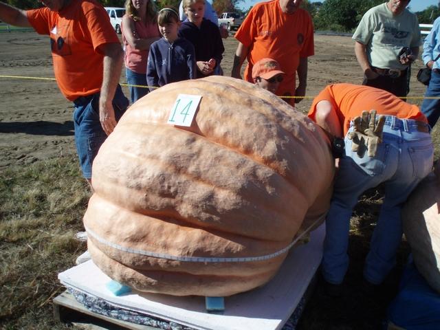 Robert Singleton finished in 16t place at the Frerichs Farm GPC weigh-off with this 823 pound pumpkin grown on a 917 Mongeon 2007 seed and crossed with the 1086 Holland.
