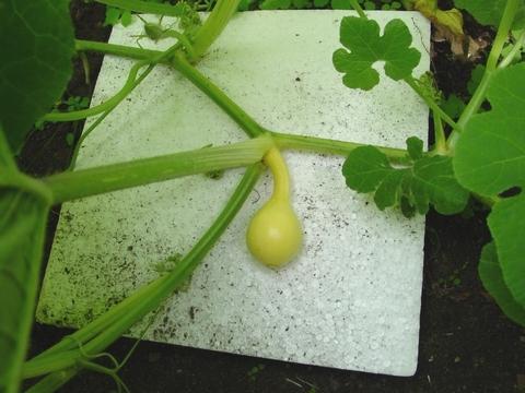 This is a six day old fruit set right where the secondary is start (9' from the root). Have this pumpkin a chance? Did somebody tryed to grown a pumpkin in a the armpit, or should I remove the secondary, or better bet on another pumpkin? - answers to [email protected]