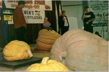 The baby is sitting on Don Crew's pumpkin from Lloydminster, Alberta