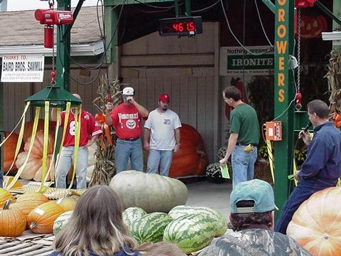 My squash for 2002, nice wheel shape, weighed 100lbs heavy. It was grown on a welty 744, Nic Welty on the same seed grew a 546. Can't wait til next year.