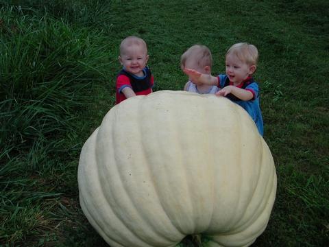 This one came off the same plant as my 501.Vine this one was on got stepped on by a deer and started to rot so I removed the pumpkin. I told the kids its a big marshmellow.