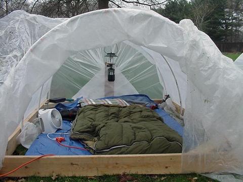 i guess the best way to try out a new hot house is to sleep in it regularly !!??? complete with a lantern, heater, alarm clock, and much more, this luxurious hot-house was spotted in a barberton backyard by an undercover photographer (me)!!