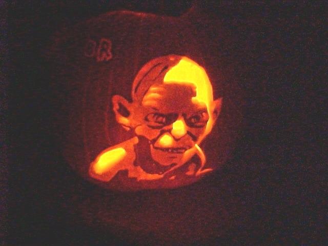 I saw a few pumpkin carvings posted so I figured I would post one of the carvings I did this year. It's good old Gollam from the Lord of the Rings!