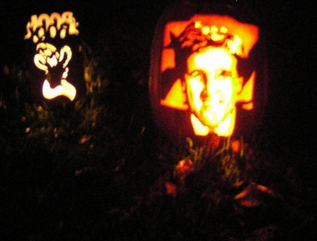 This pumpkin was a HOOT! We live in an area that is almost entirely Republican and the comments were hilarious! Honestly, if I had had the time I would have carved Bush as well, but . . . Anyhow, my neighbours and all those who visited were quite complimentary on the pumpkin, just not the image portrayed. Heh :) I love controversy!