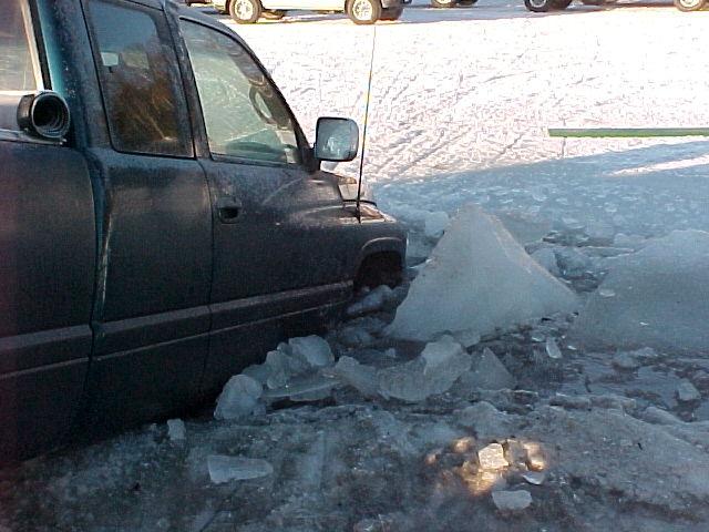 the depth of the water was only 2 ft deep but spinning his tires caused the dodge to sink even further down.