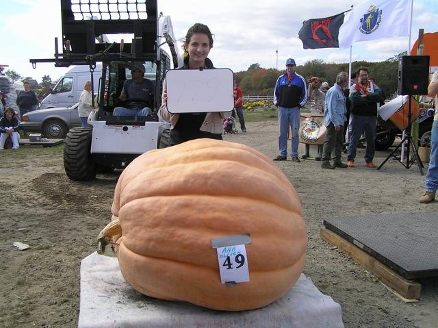 Ana Oliver of RI grew this 779 pound AG Giant Pumpkin and displayed it for an official weight at the Frerich Farms SNGPG Weigh-off on a beautiful day.