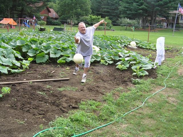 Here Dick Wallace demonstrates how he carefully culls undesirables from his patch. Thats his 1450 right behind him in July. Man for a big guy, Dick is very light on his feet.