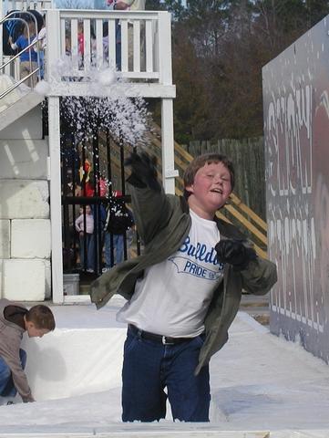 Tyler trying to bomb me with a snowball when they went and played in it at Wild Adventures Theme Park, Valdosta GA.