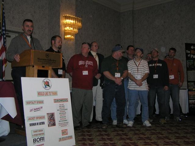 Tim Parks has the podium and speaks on behalf of the Ohio Growers, after they were honored for the Great Pumpkin Commonwealth TOP 10 Average weight for Giant Pumpkins, at Niagara Falls, Ontario, March 2007.