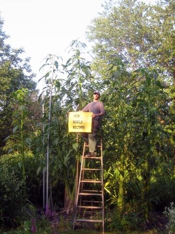 Jesse submitted a height of 17'8" to Guinness World Records for his Giant Amaranth plant (Amaranthus Australis). He is awaiting confirmation from Guinness. The stem circumference on this plant is now over 52 inches around. Hopefully, I can catch up to his plant before the end of the year. I'm currently at 16 ft. My growing season is quite a bit longer in New Jersey, and these plant very late in the year; so there is a chance.