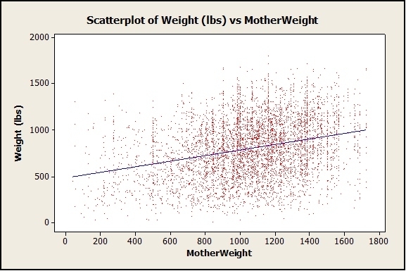 If we assume the standard deviation is constant across the range of mother weights than larger mother weights would, on average, have a higher probability of growing that 2000 lb offspring.