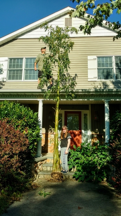 2nd tallest amaranth in the garden this year. A 21'11" Giant Amaranth (Amaranthus australis) weighing 87 pounds with a 29 1/2 inch stem base circumference. This Amaranth lost several feet at top when trying to straighten out stem earlier in the season, but still made it to almost 22 feet.