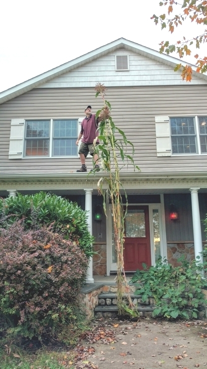 Top three tallest sorghum bicolor. Tallest at 19'0", second at 15'11", and third at 15'10". The 19 feet tall sorghum is a personal best for me. Although very late flowering, all three produced seed.