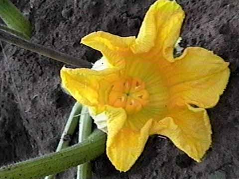 Most female pumpkin flowers have 4 segments. This is a nice example of one with 5 perfectly formed segments. 5 or 6 segmented flowers are less common and it is yet unproven if more segments yield bigger pumpkins. However, most growers prefer more segments.